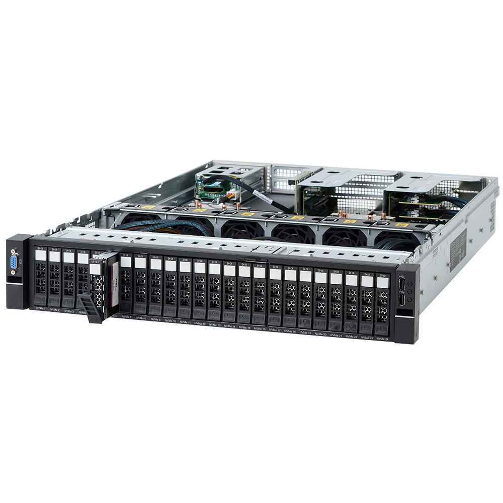 • Up to 24 NVMe SSDs with a range of capacity and endurance options